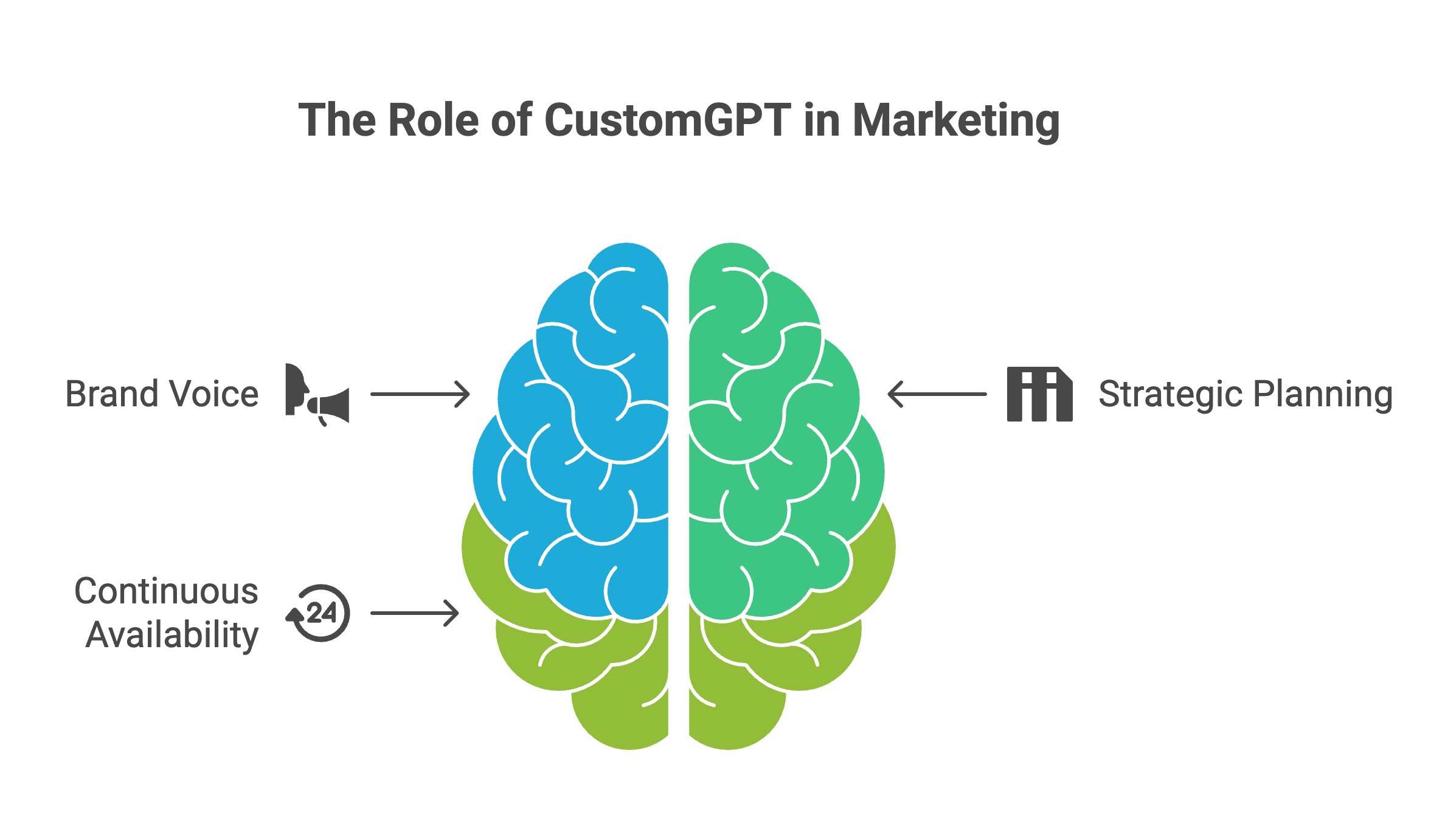 A CustomGPT becomes your brand-aligned marketing assistant: it writes like you, thinks like you, and never asks for a vacation.
