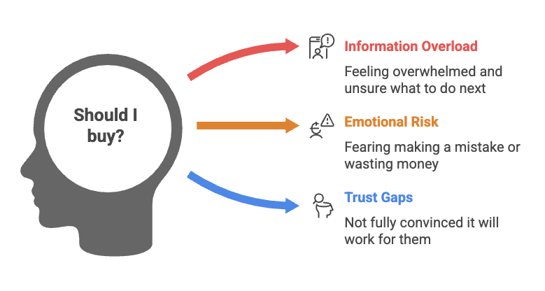 “No problem. Here are a few stories from clients who were in a similar position and what helped them decide.”Fear-based hesitation: